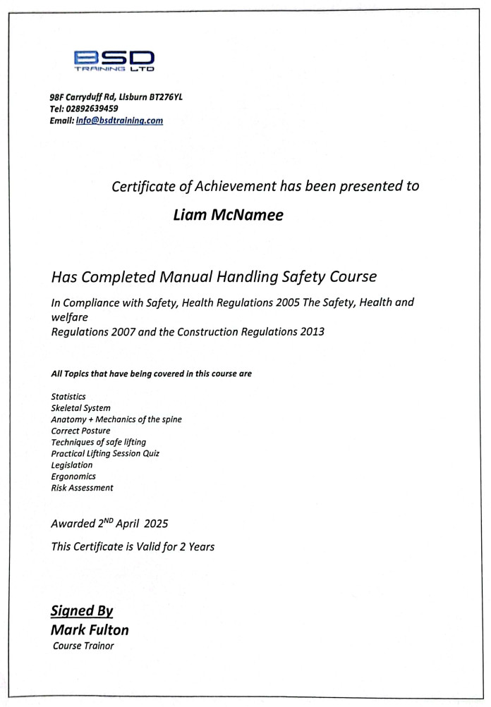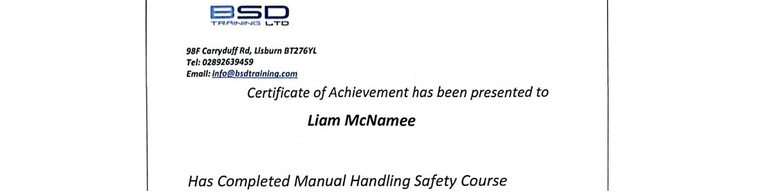 This individual clearly took our company logo and details from the internet and then made up a certificate citing legislation and topics to satisfy the requirements for Manual Handling training in Ireland.